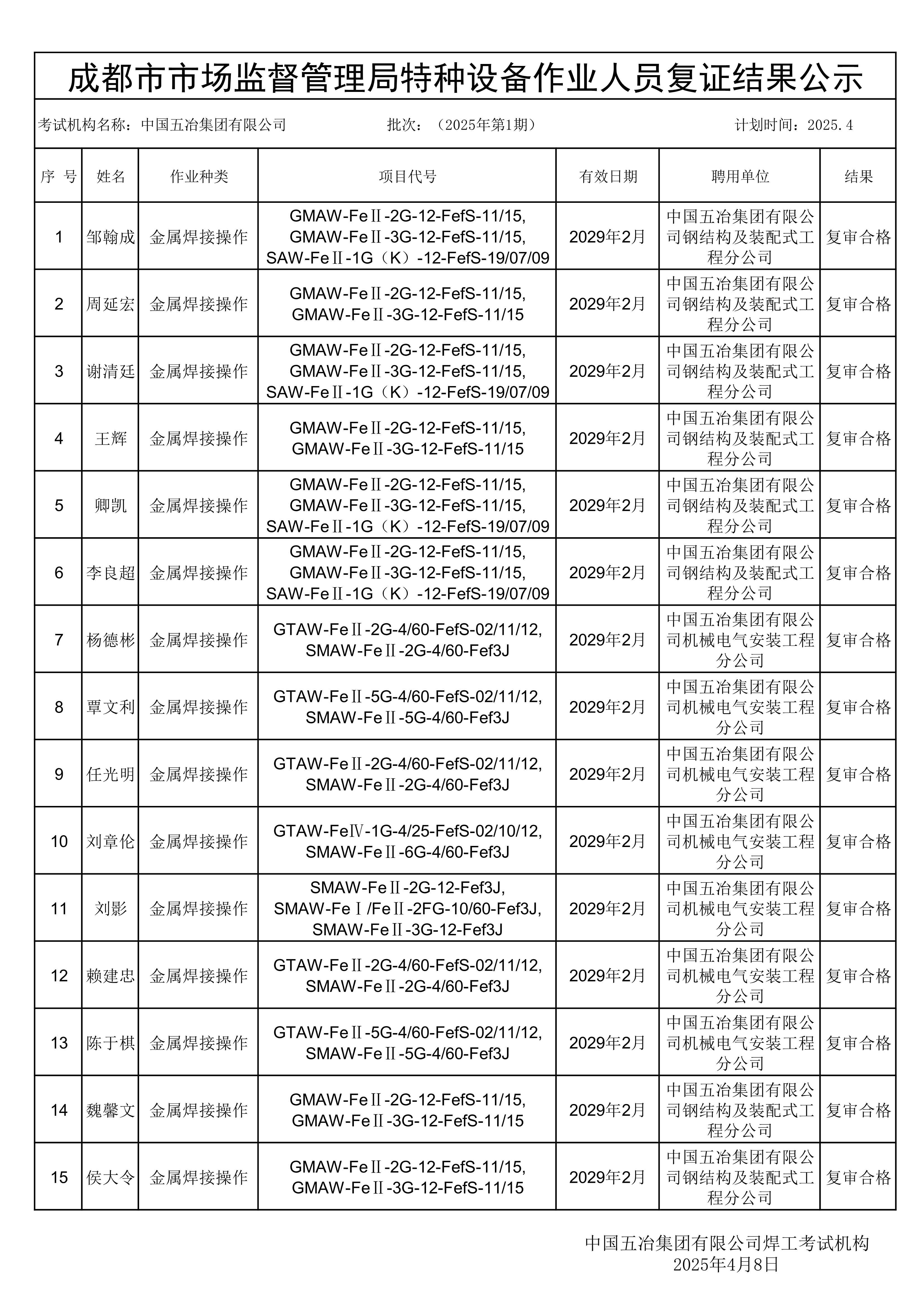 2025年第一批考試結果公示